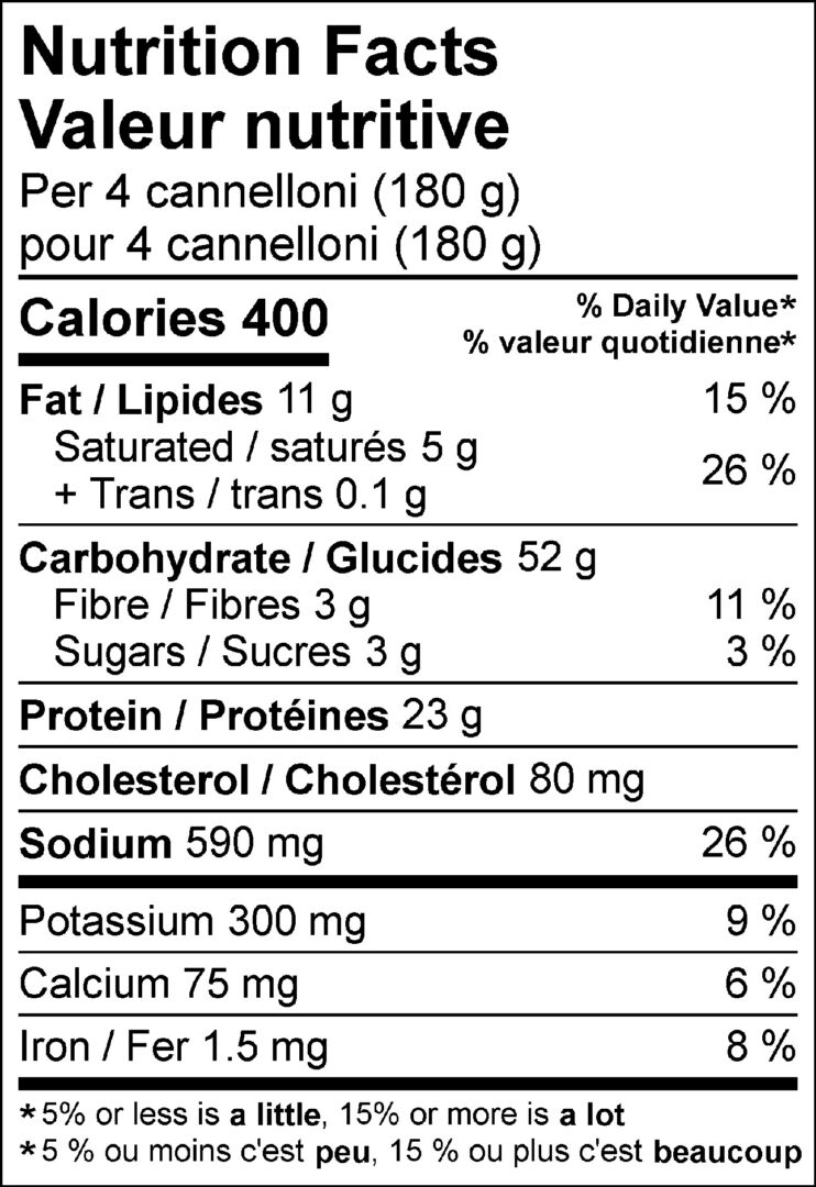 Originally a type of lasagna, these classic and fresh cannelloni are thin and smooth pasta sheets made from traditional and simple ingredients like durum wheat semolina, water and eggs, and no added preservatives. Once they are rolled and cut, they are filled to perfection with tender chicken, savoury prosciutto, and just a touch of creamy ricotta cheese.