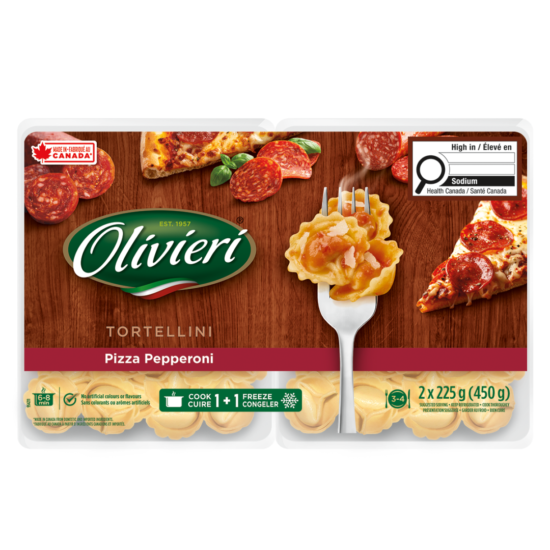 Amp up the flavour of family mealtimes with Olivieri® Pepperoni Pizza Tortellini. Comforting and convenient in equal measure, it opens up a whole world of possibilities for lunch or dinner. Pair it with traditional Italian sauces, or pair it with a protein of your choice, and you’ve got a tasty and satisfying meal in minutes.